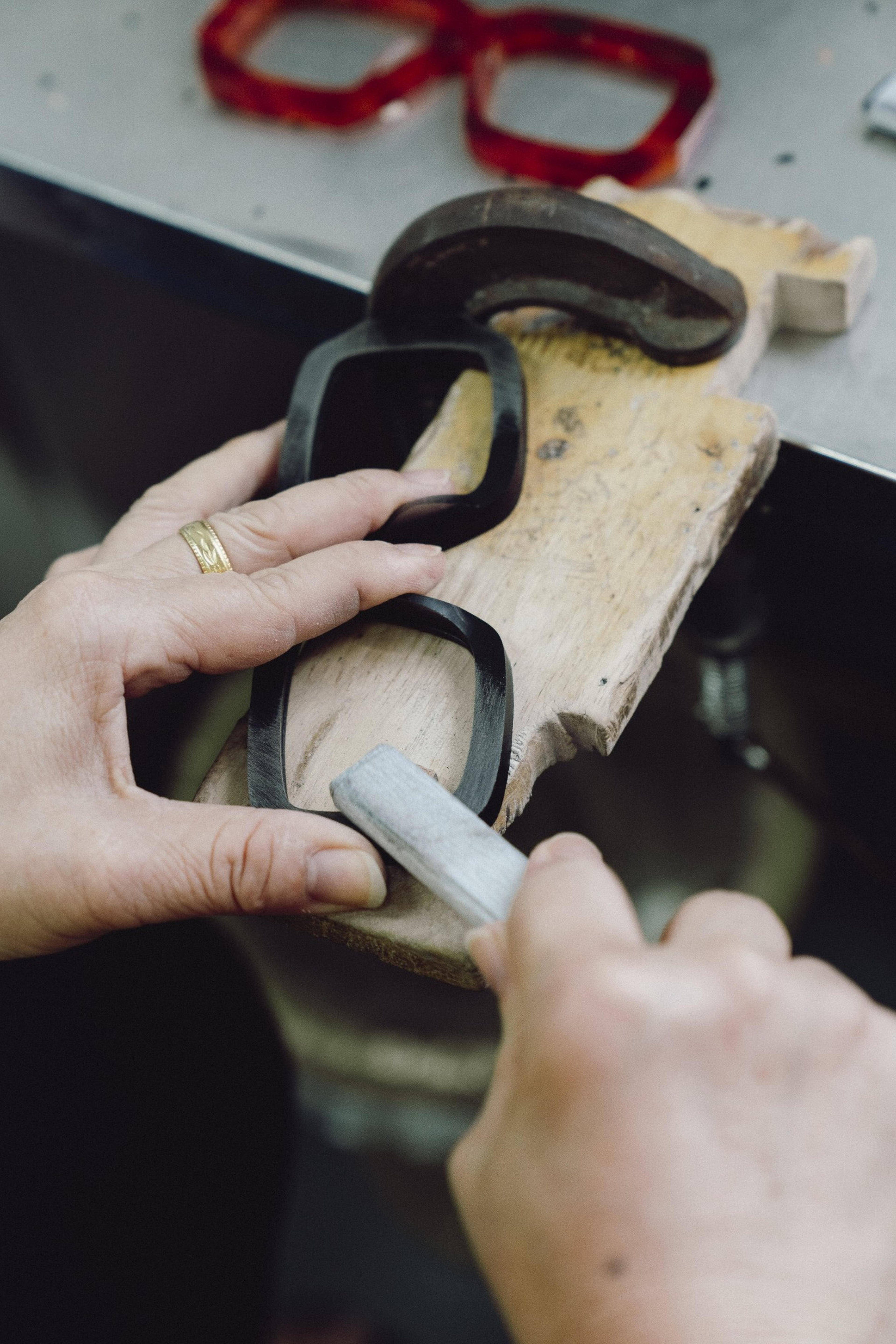Our eyewear is crafted by experienced professionals in a work environment that enhances creativity, precision and overall flourishing. Comfortable workspace, access to natural light with wide windows and appropriate temperature are just some of the aspects that build this environment.